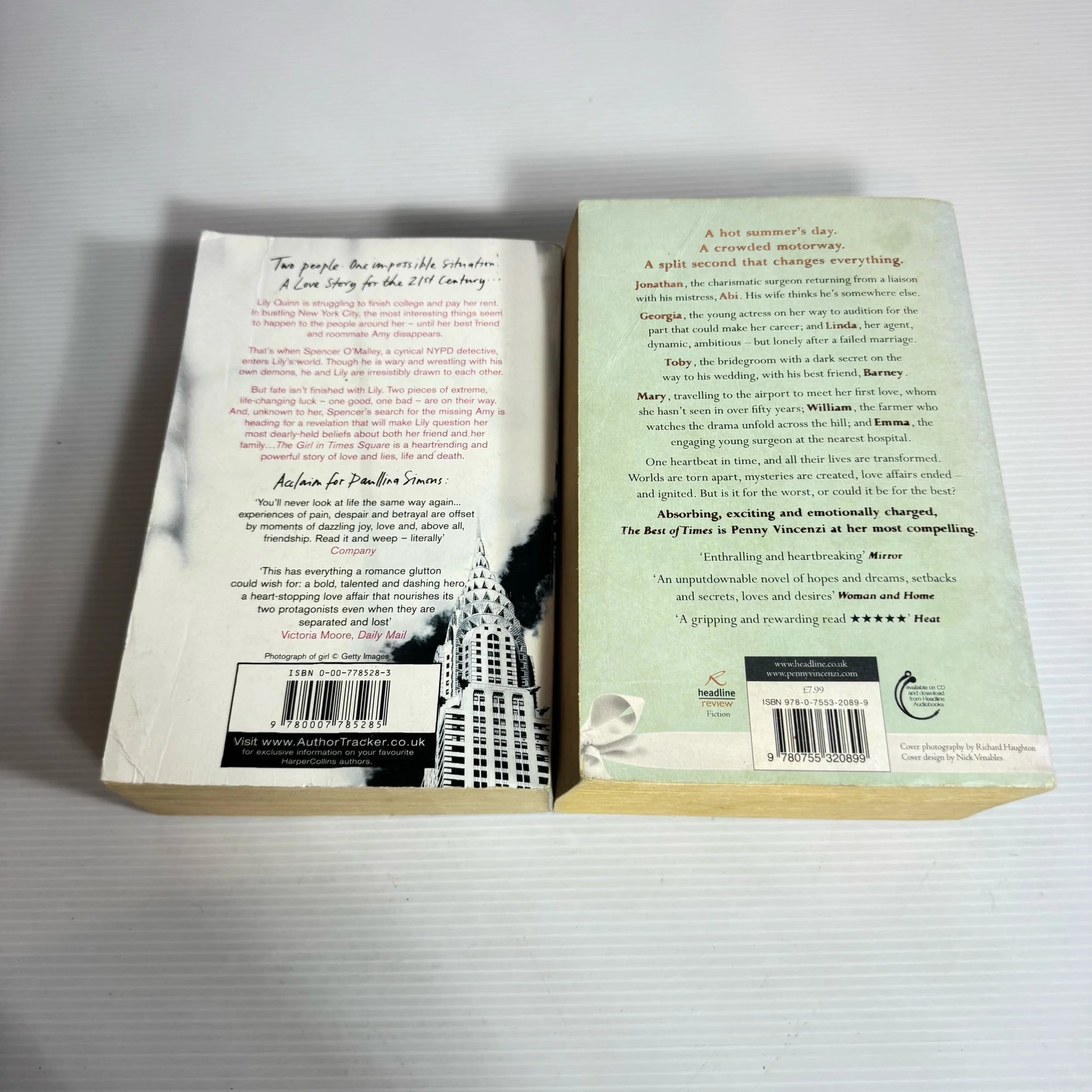 Contemporary Romance Book Bundle x 2 : The Girl in Times Square - Paullina Simons & The Best of Times - Penny Vincenzi (2344)