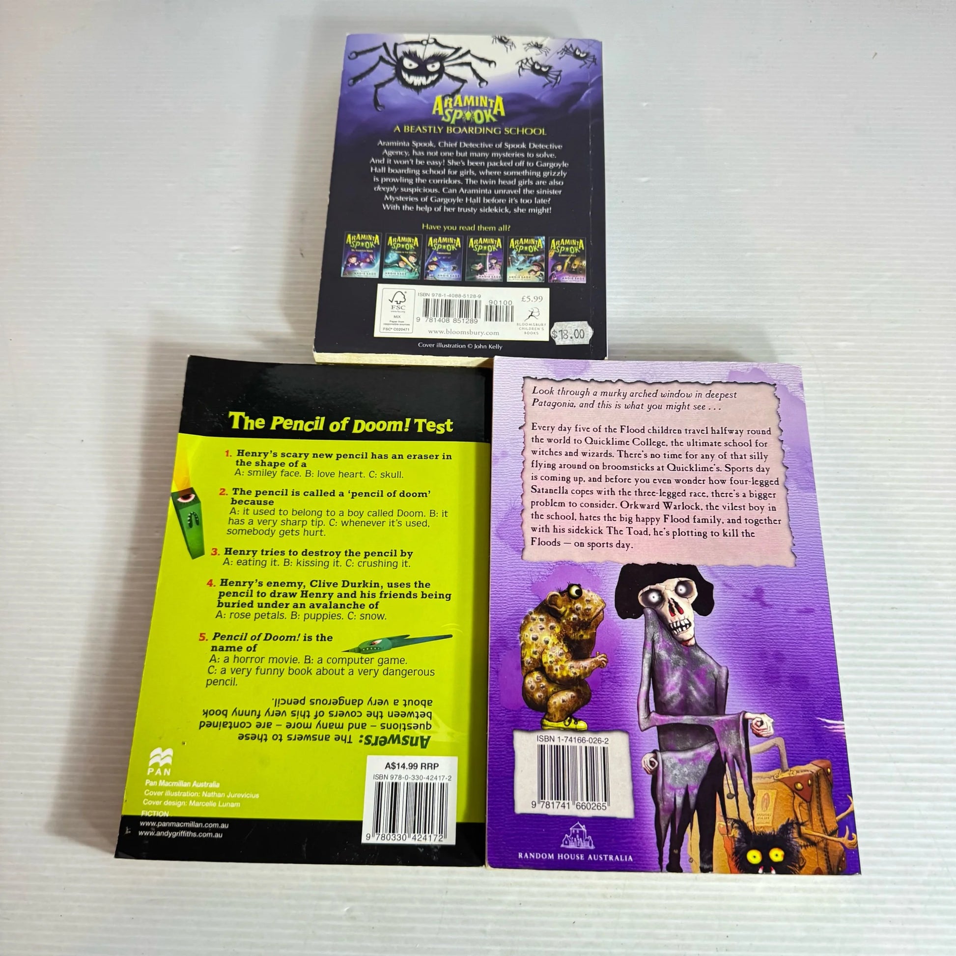 Children’s Spooky Book Bundle x 3 Books : Araminta Spook, The Floods Playschool, Pencil of Doom (2117)