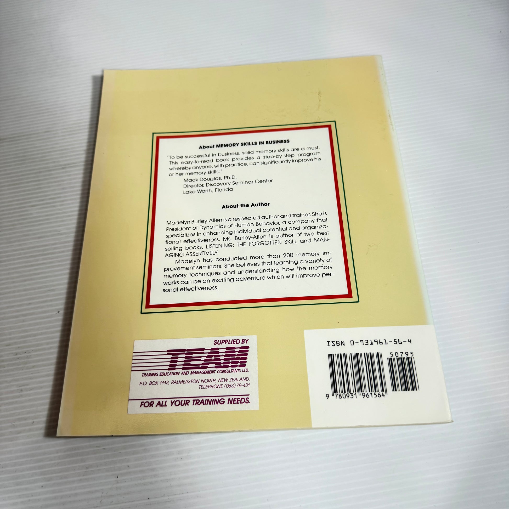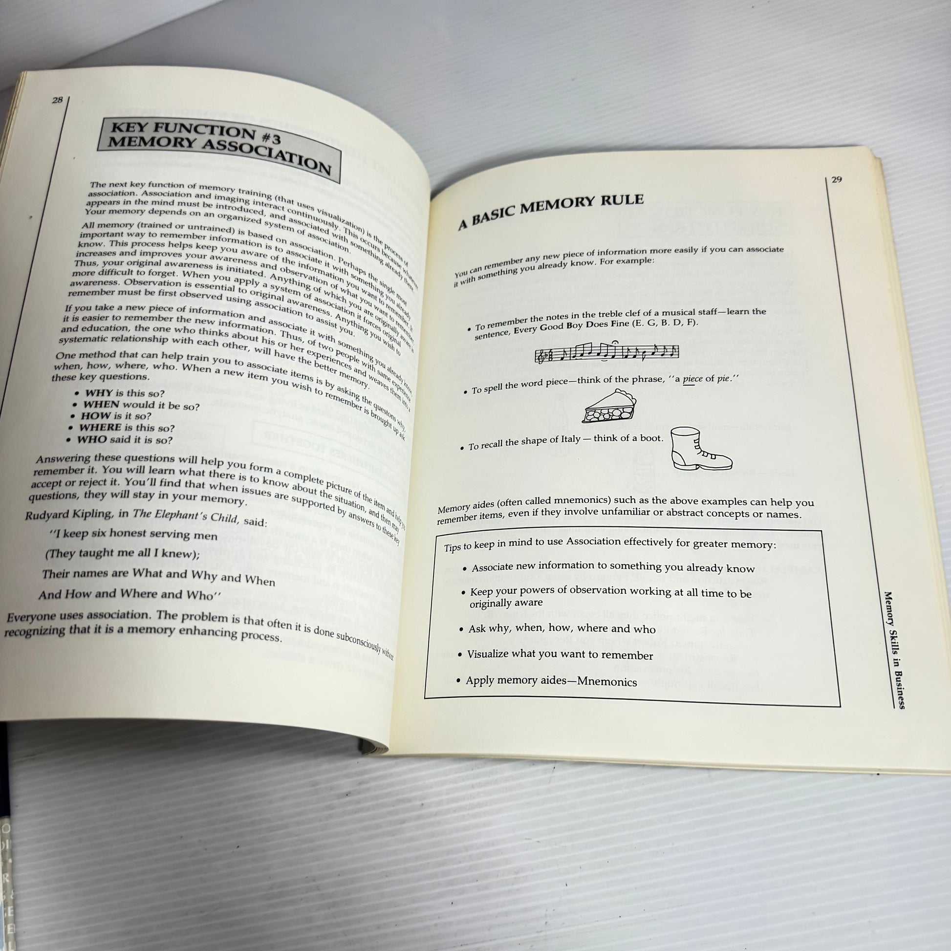 Memory Skills In Business : Basic Techniques for Memory Improvement - Madelyn Burley-Allen (Vintage 1988)