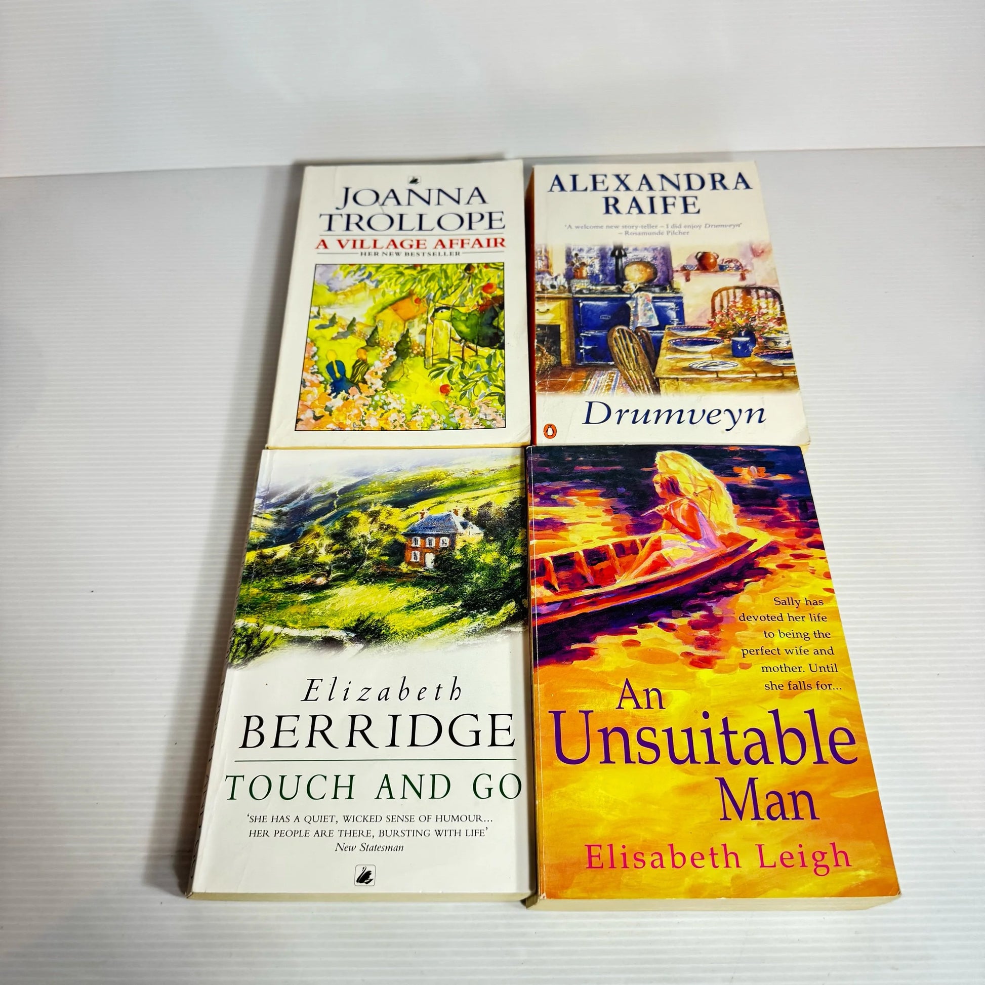 Titles: A Village Affair - Joanna Trollope, Touch and Go - Elizabeth Berridge, Drumveyn - Alexandra Raife, An Unsutiable Man - Elizabeth Leigh