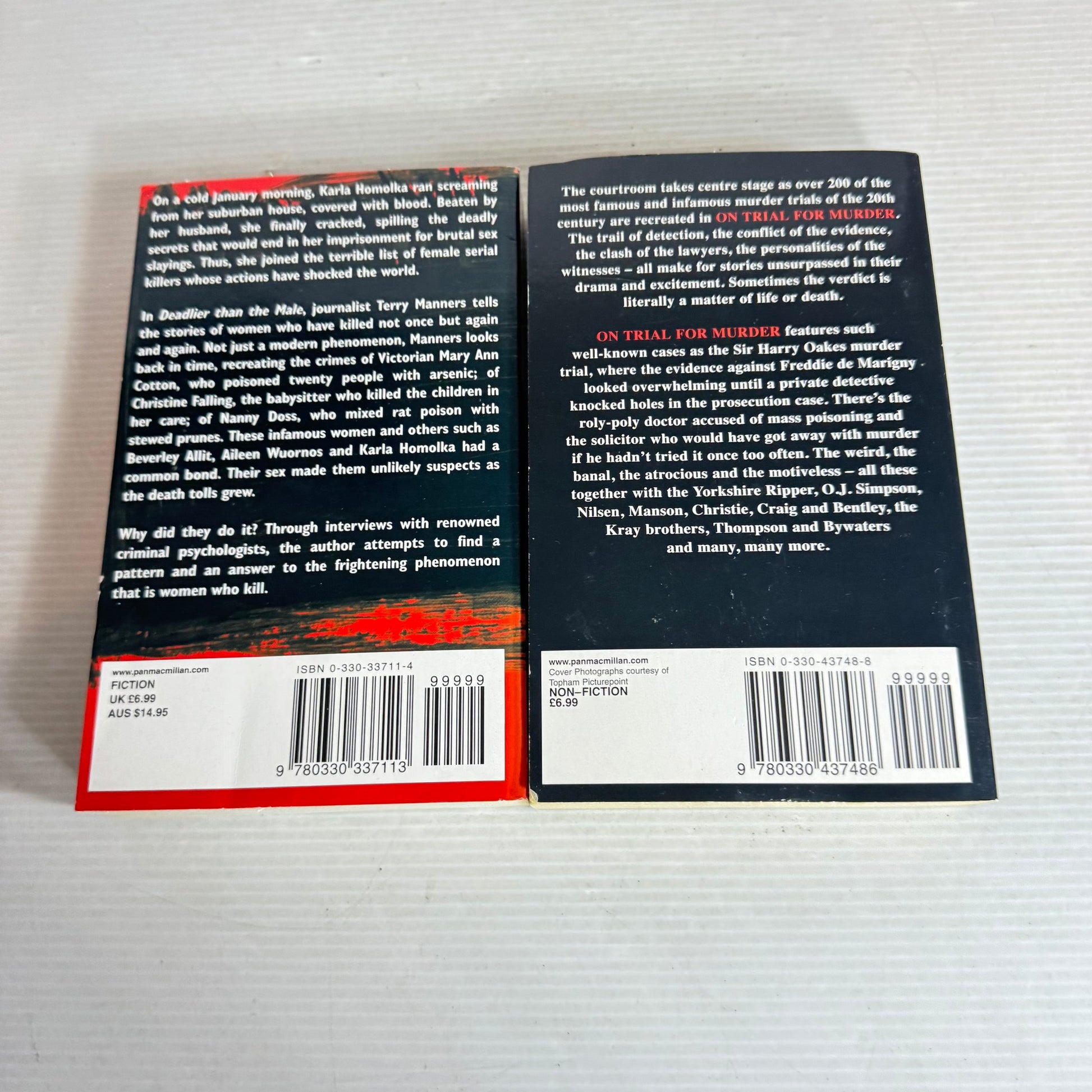 True Crime: Murder Book Bundle x 2 Books : Deadlier Than The Male & On Trial For Murder (2133)