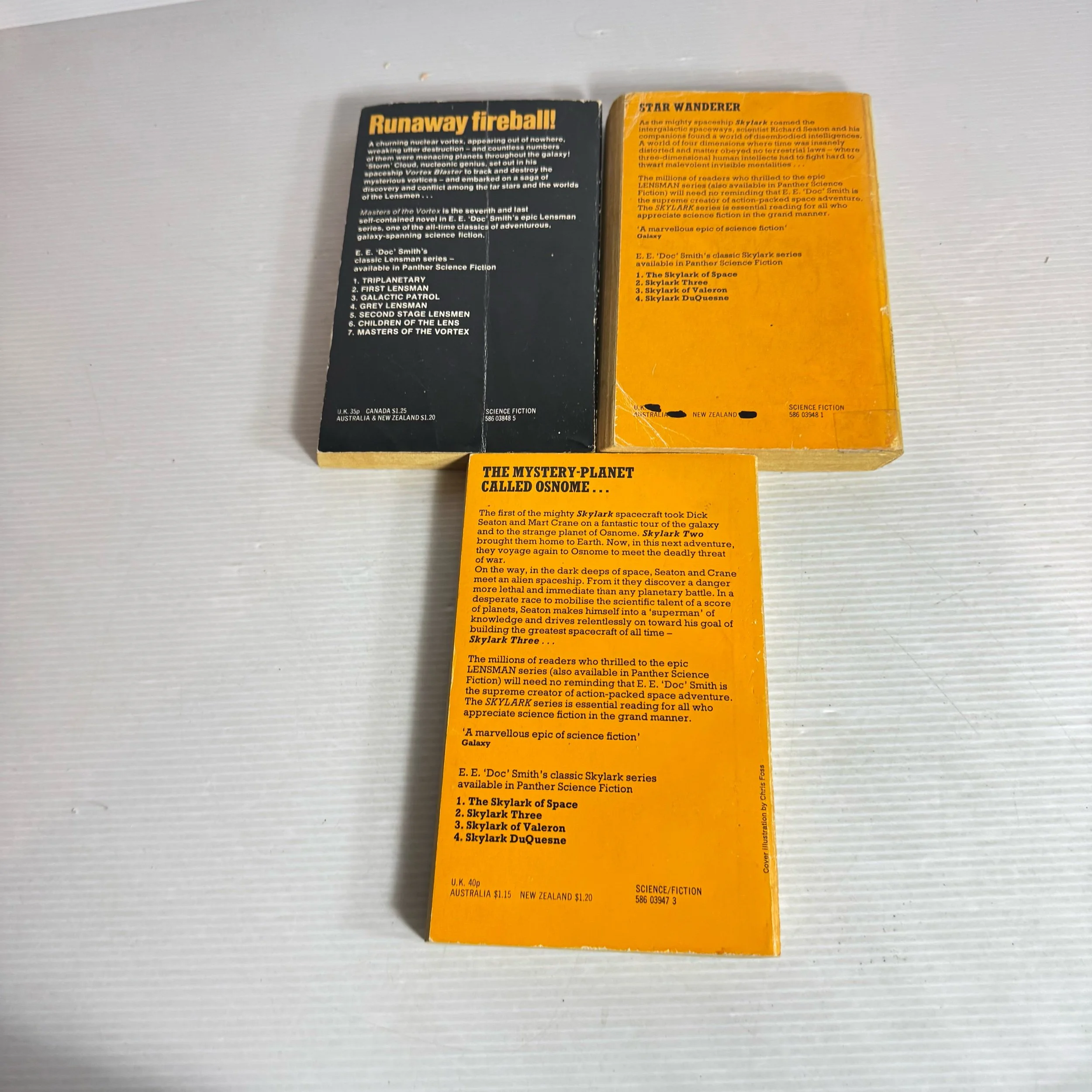 E.E. ‘Doc’ Smith Science Fiction Book Bundle x 3 Books : Skylark Three, Skylark of Valeron, Masters of The Vortex (Vintage 1972-1974) (2097)