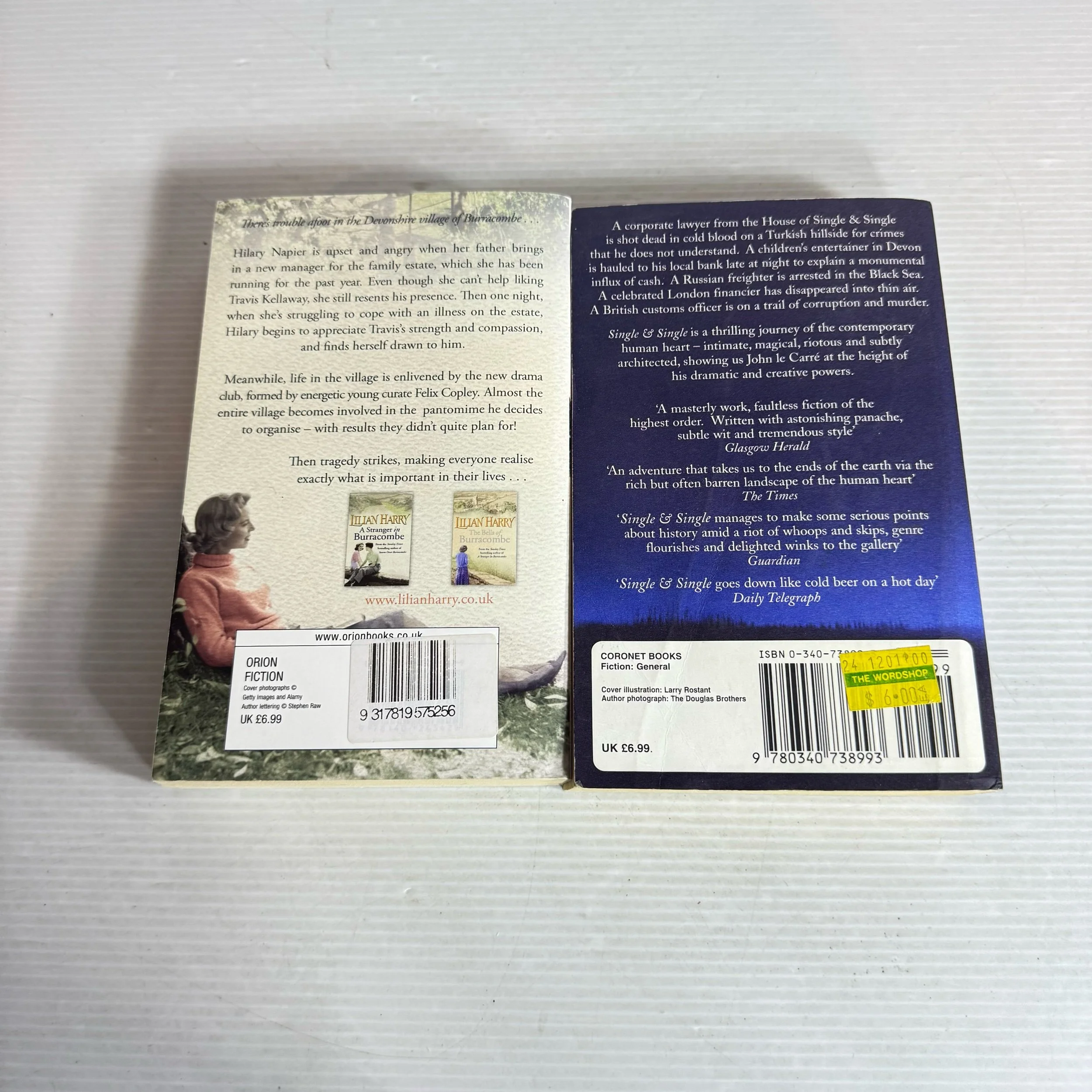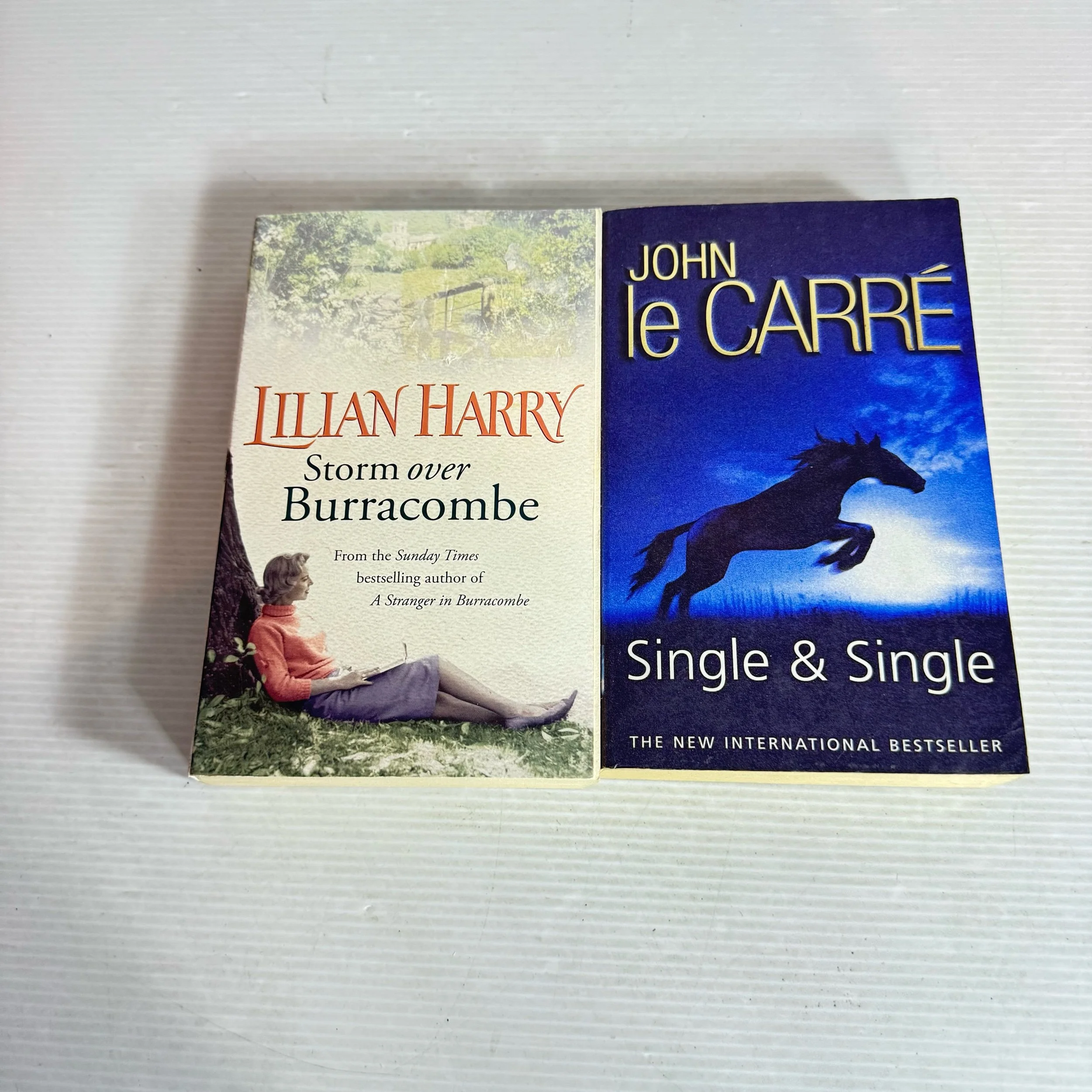 Spy Fiction Book Bundle x 2 Books : Single & Single - John Le Carre & Storm over Burracombe - Lillian Harry (713)