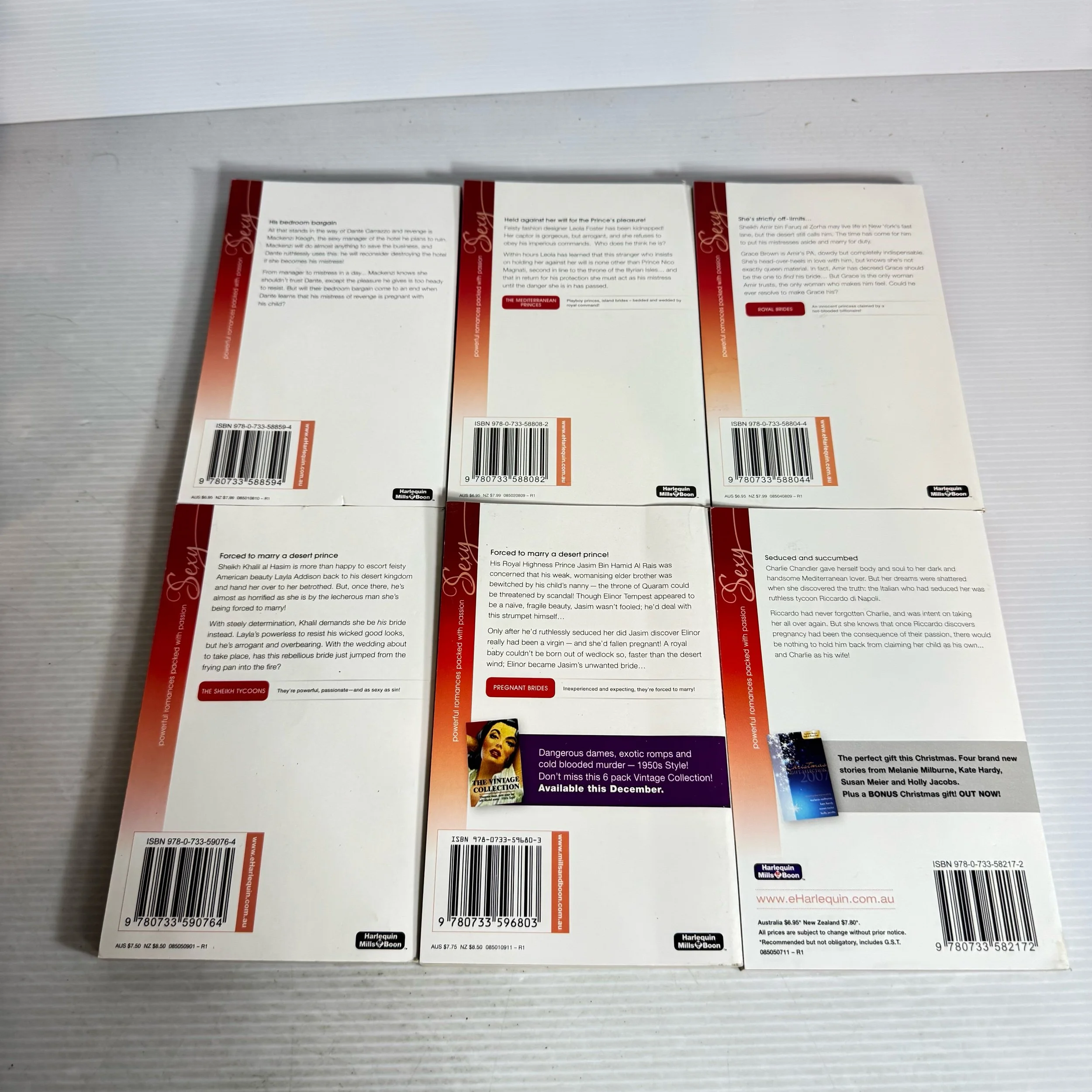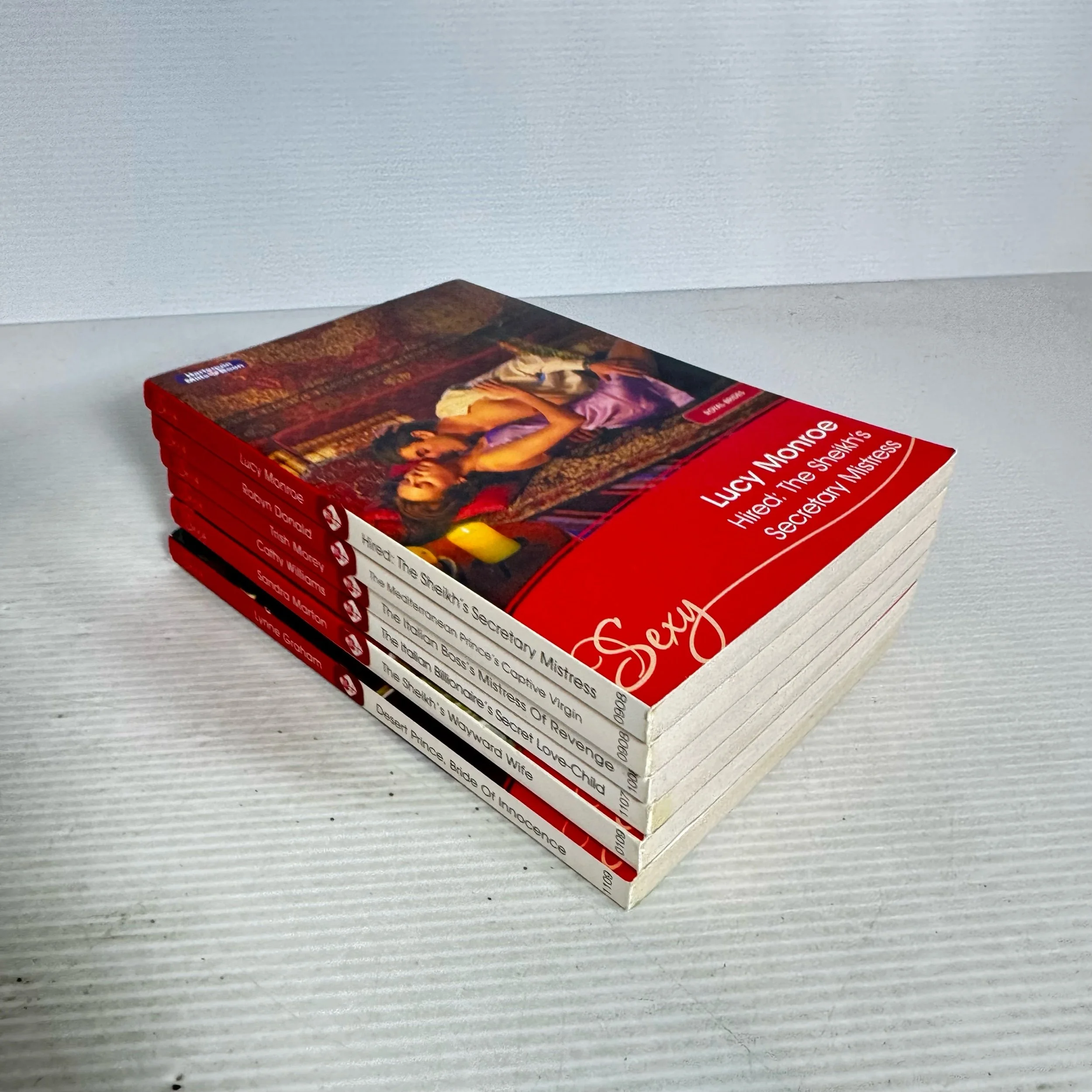 Titles: The Mediterranean Prince’s Captive Virgin, the Italian Boss’s Mistress of Revenge, The Sheikh’s Wayward Wife, Hired : The Sheikh’s Secretary Mistress, Desert Prince, Bride of Innocence, The Italian Billionaire’s Secret Love-Child