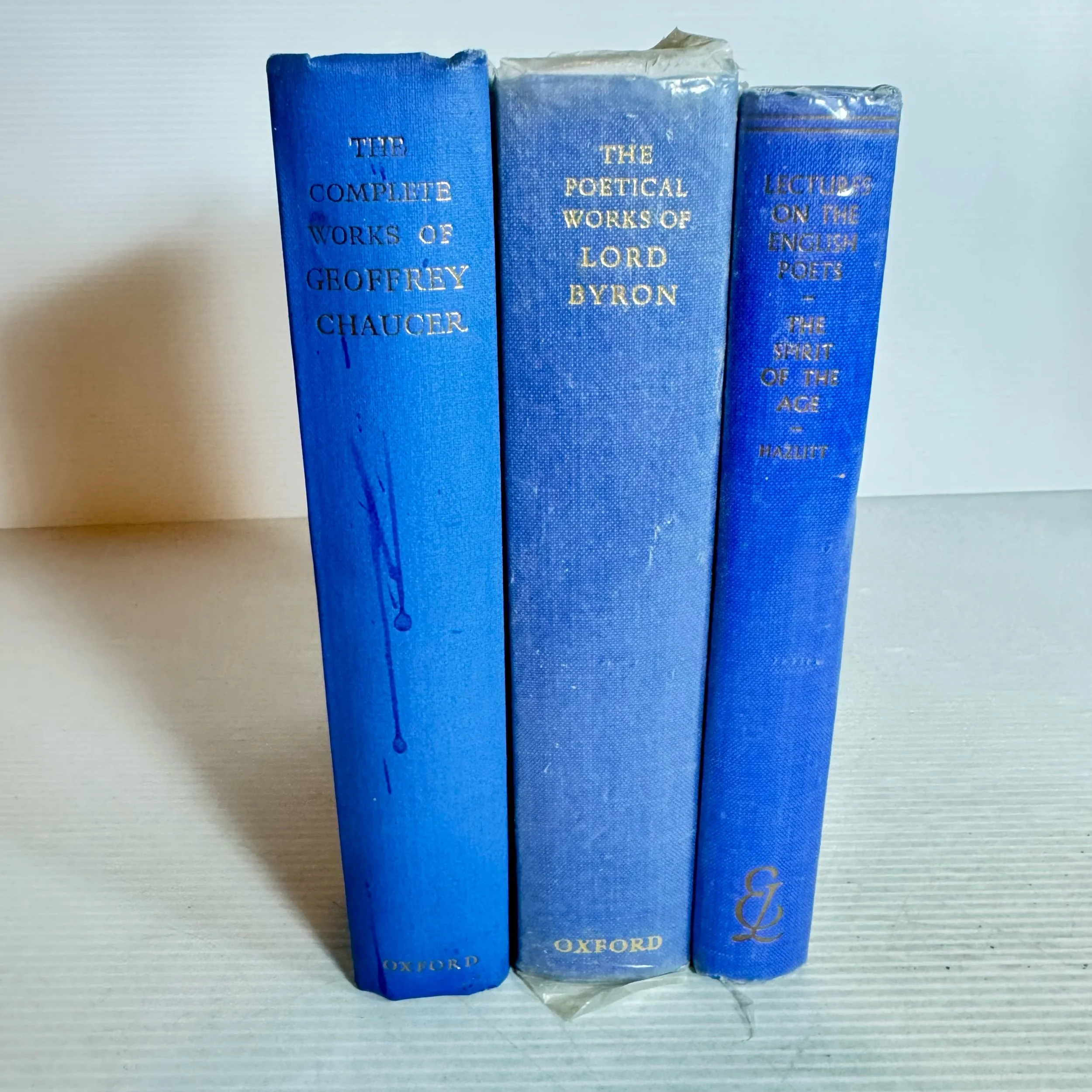 Vintage Classic Blue Books x 3 The Poetical Works of Lord Byron 1959, The Complete Works of Geoffrey Chaucer 1957, Lectures on the English Poets 1960 (2091)