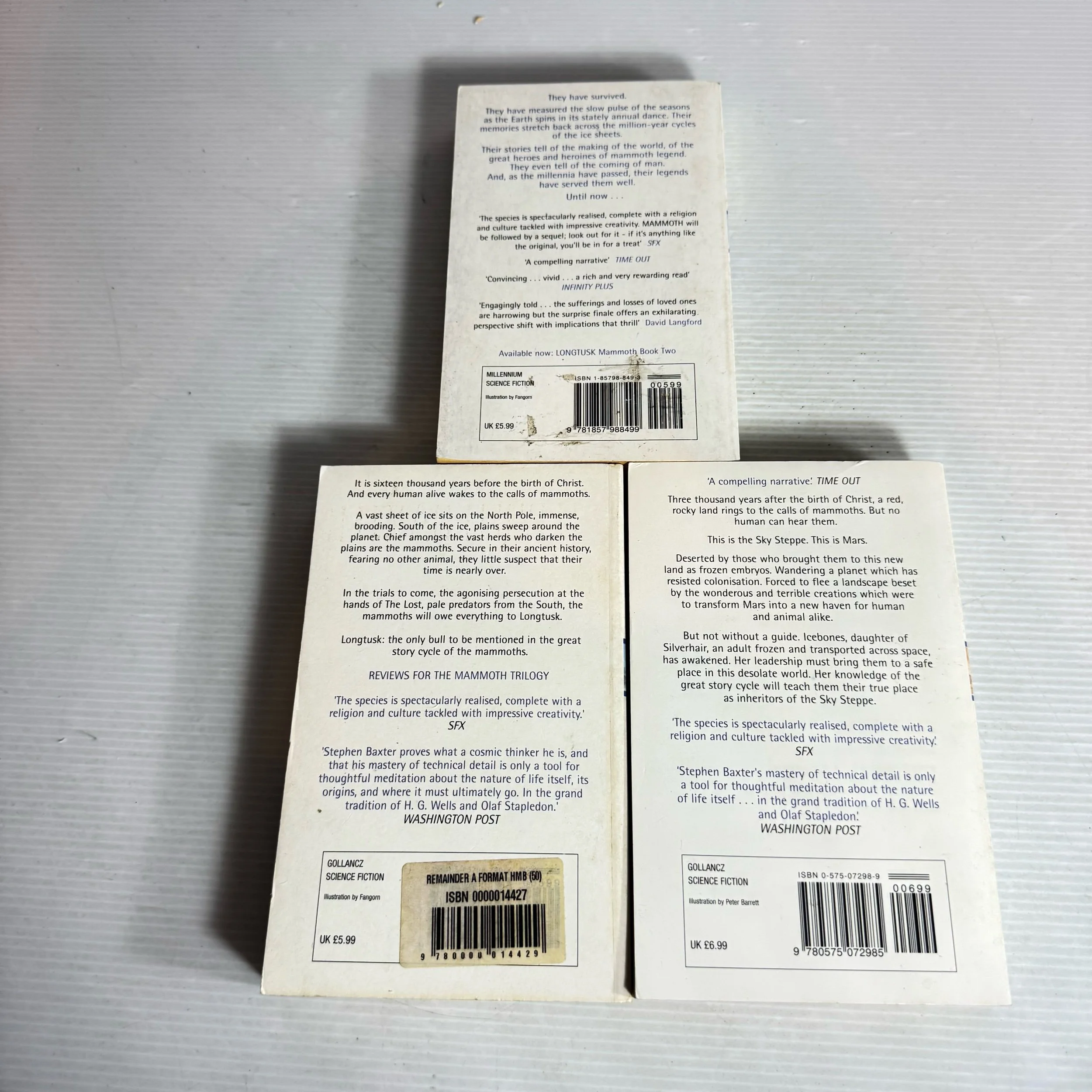 Silverhair Series Books 1-3 - Stephen Baxter Book Bundle x 3 Books : Mammoth, Longtusk, Icebones (2111)