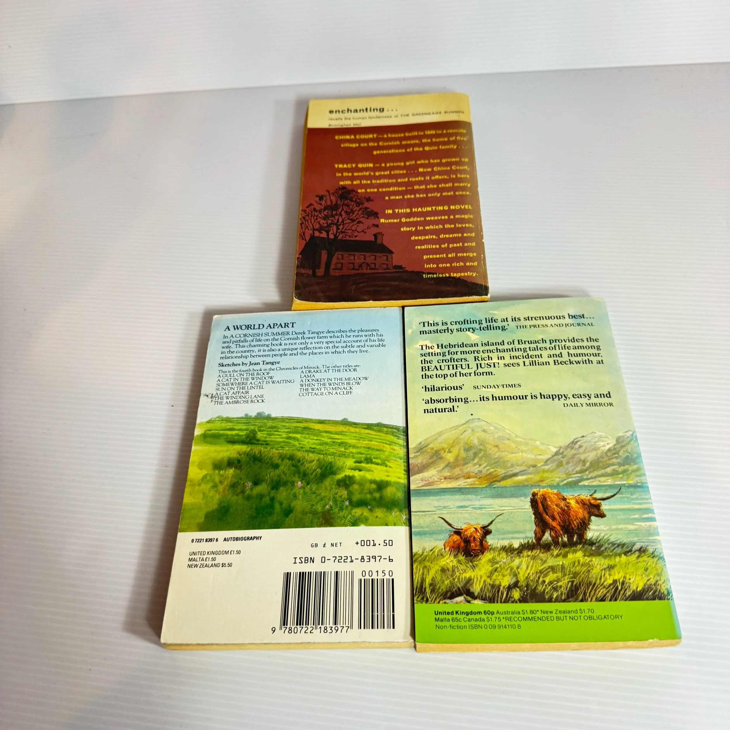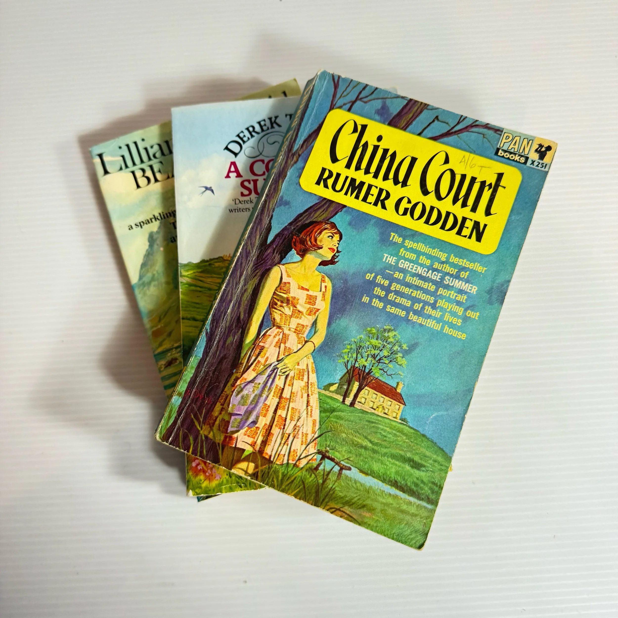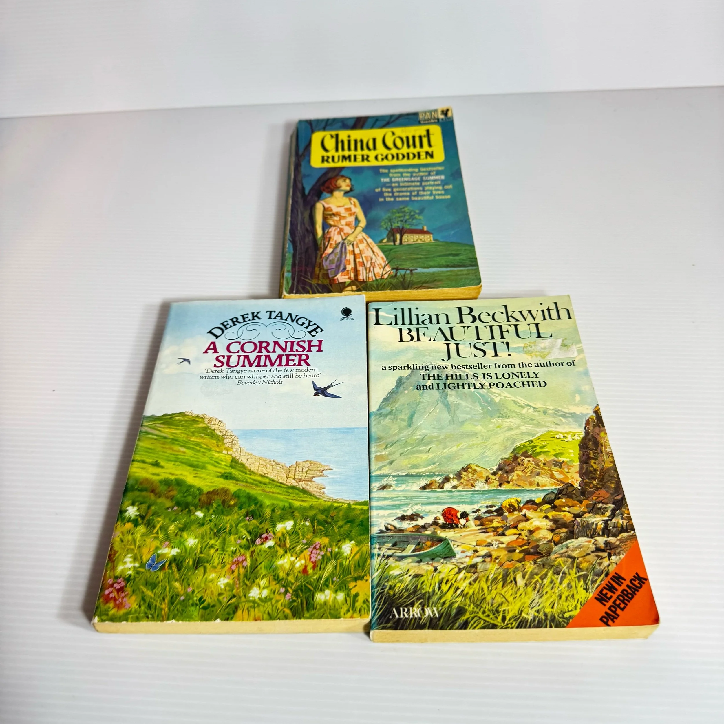 Titles: China Court - Rumer Godden, Beautiful Just! - Lillian Beckwith, A Cornish Summer - Derek Tangye